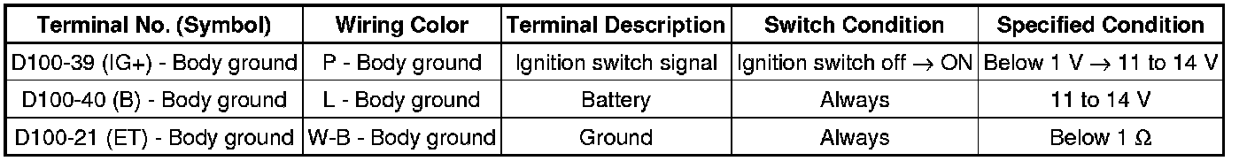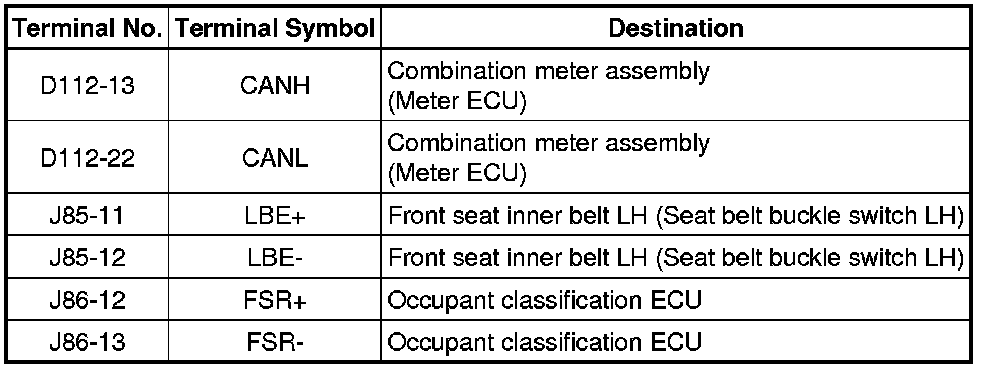 SEAT BELT: SEAT BELT WARNING SYSTEM (for Hatchback): TERMINALS OF ECU
