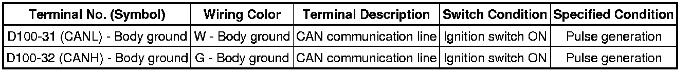 (d) Measure the check for pulse according to the value(s) in the table below.