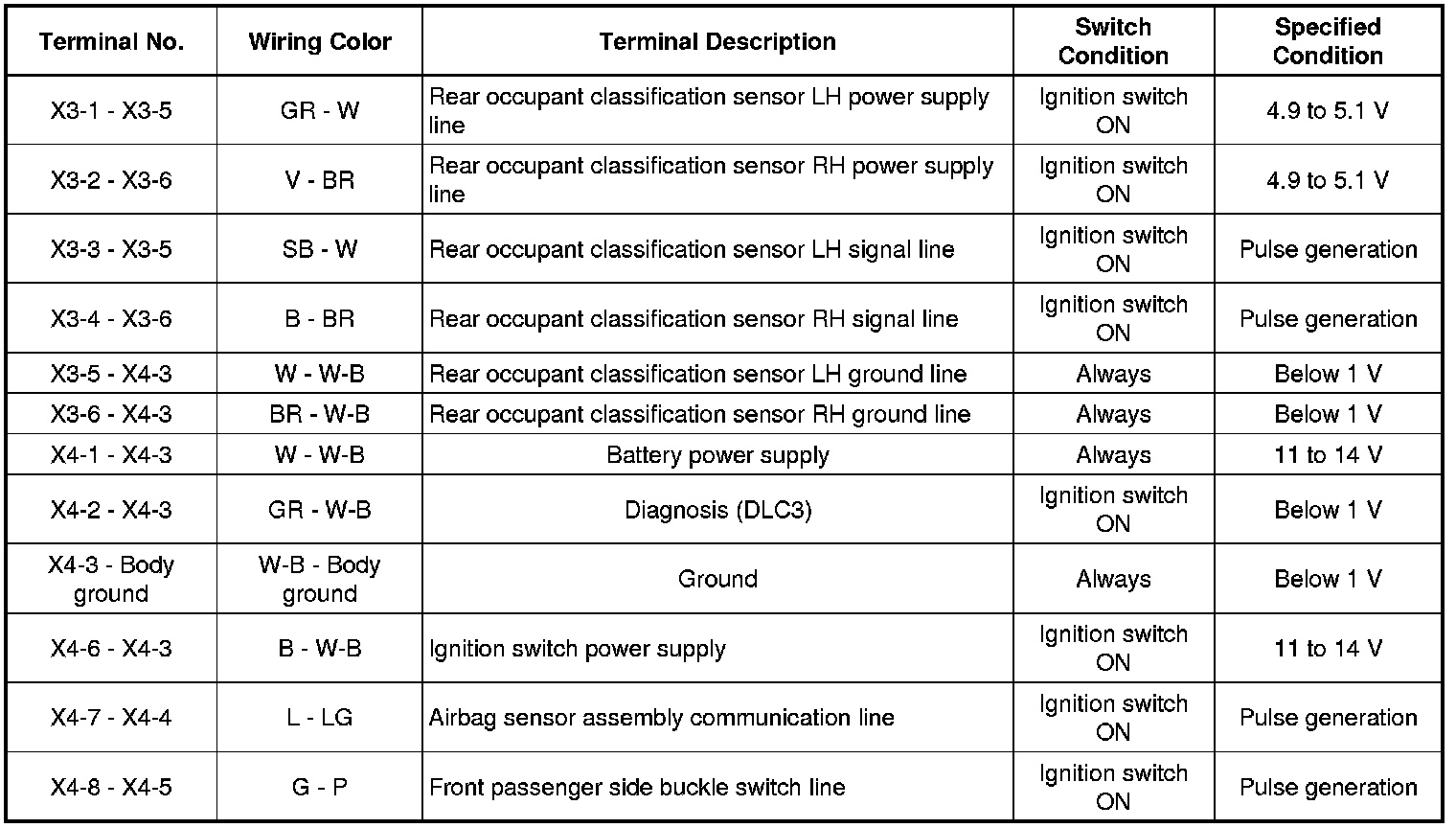 * If the result is not as specified, the occupant classification ECU may have a malfunction.