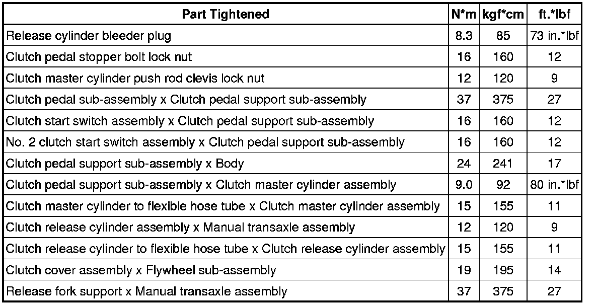 SPECIFICATIONS: CLUTCH (for Hatchback): TORQUE SPECIFICATIONS