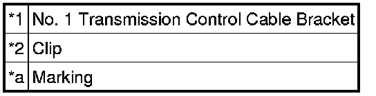 Make sure that the marking on the cable is aligned with the slit in the No. 1 transmission control cable bracket before installing the cable.