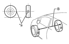 (d) Put tread center marks on the rearmost points of the front wheels and measure the distance between the marks (Dimension B).