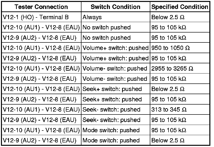 (1) Measure the resistance according to the value(s) in the table below.