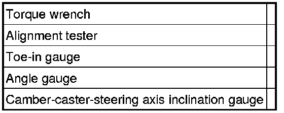 PREPARATION: ALIGNMENT / HANDLING DIAGNOSIS (for Hatchback): EQUIPMENT