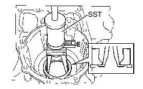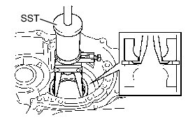 (a) Using SST, remove the front drive pinion front tapered roller bearing from the transaxle housing.