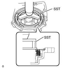 (b) Place SST on the direct clutch return spring sub-assembly and compress the springs with a press.