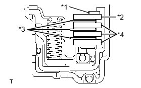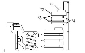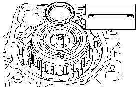 * Stop the press when the overdrive brake piston is lowered to 1 to 2 mm (0.0394 to 0.0787 in.) from the snap ring groove, to prevent the overdrive brake piston from being deformed.