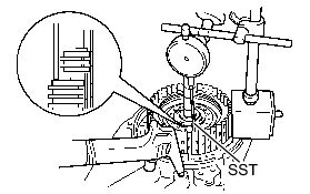 (b) Using a dial indicator, measure the clearance of the intermediate shaft assembly.