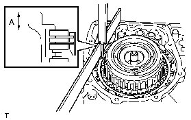 (a) As shown in the illustration, place a straightedge on the transaxle case and measure the distance between the 2nd coast and overdrive brake flange and straightedge using a vernier caliper. (Dimension A)