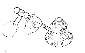 (a) Using a pin punch 5 mm and hammer, install the front differential pinion shaft straight pin to the differential case.