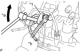 (a) Using a union nut wrench 14 mm, disconnect the outlet No. 1 oil cooler tube while holding the oil cooler tube union with a wrench.