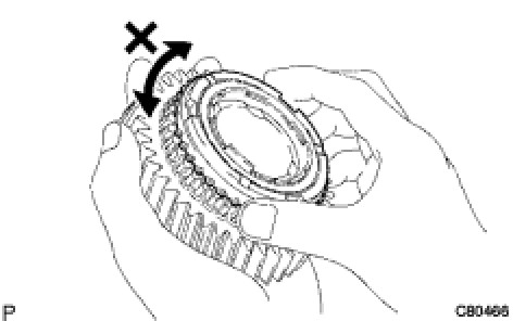 (c) Turn the No. 1 synchronizer ring in one direction while pushing it against the 2nd gear cone.