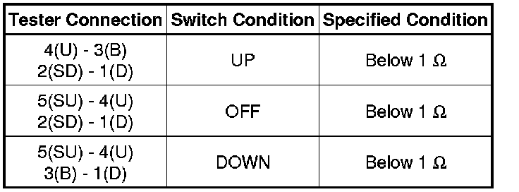 If the result is not as specified, replace the power window regulator switch assembly.