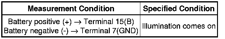 (b) Apply battery voltage to the power window regulator master switch and check that the illumination comes on.
