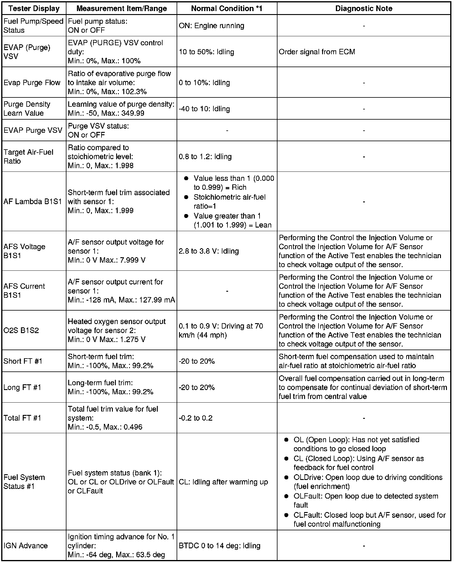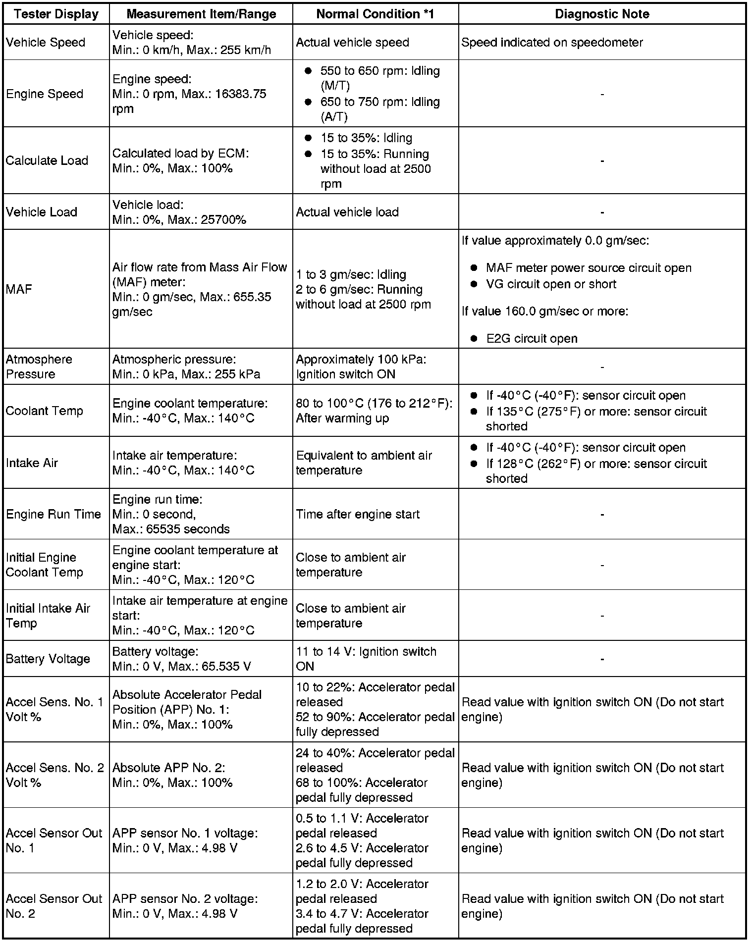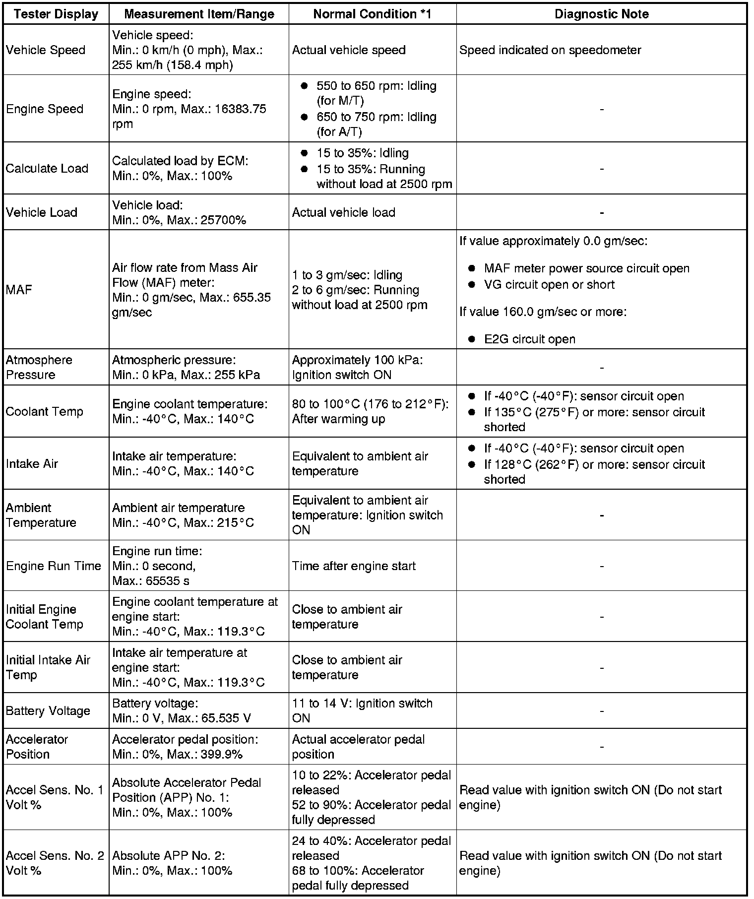 * *1: If no idling conditions are specified, the transmission gear selector lever should be in the N or P position (neutral), and the A/C switch and all accessory switches should be OFF.