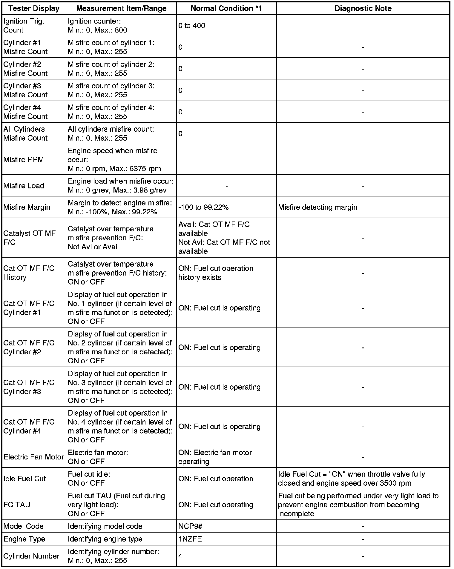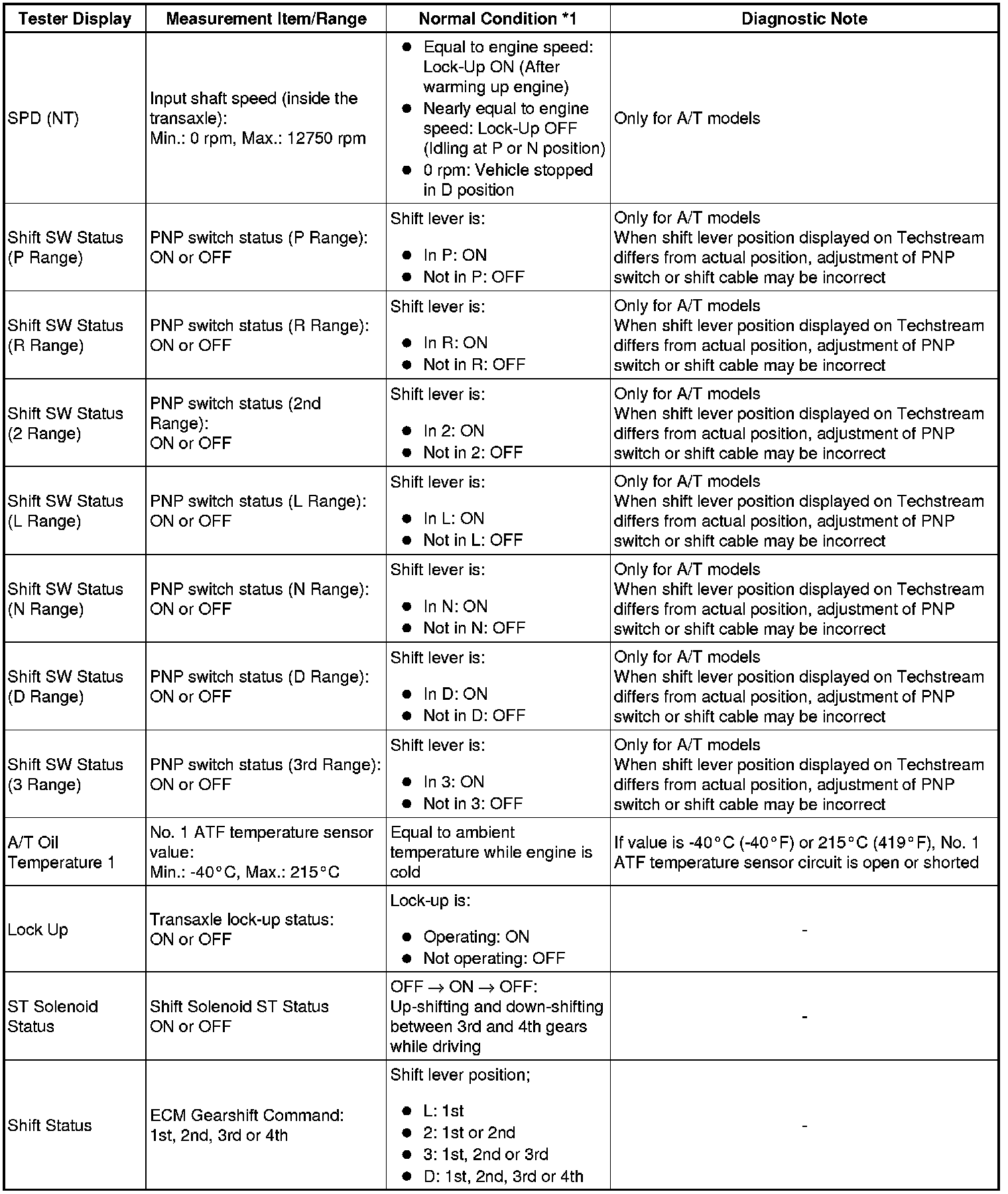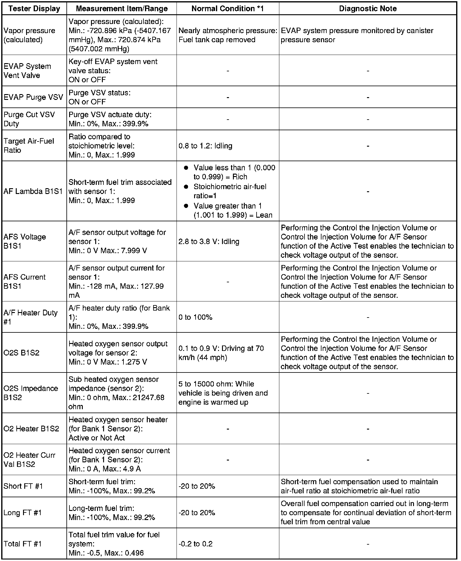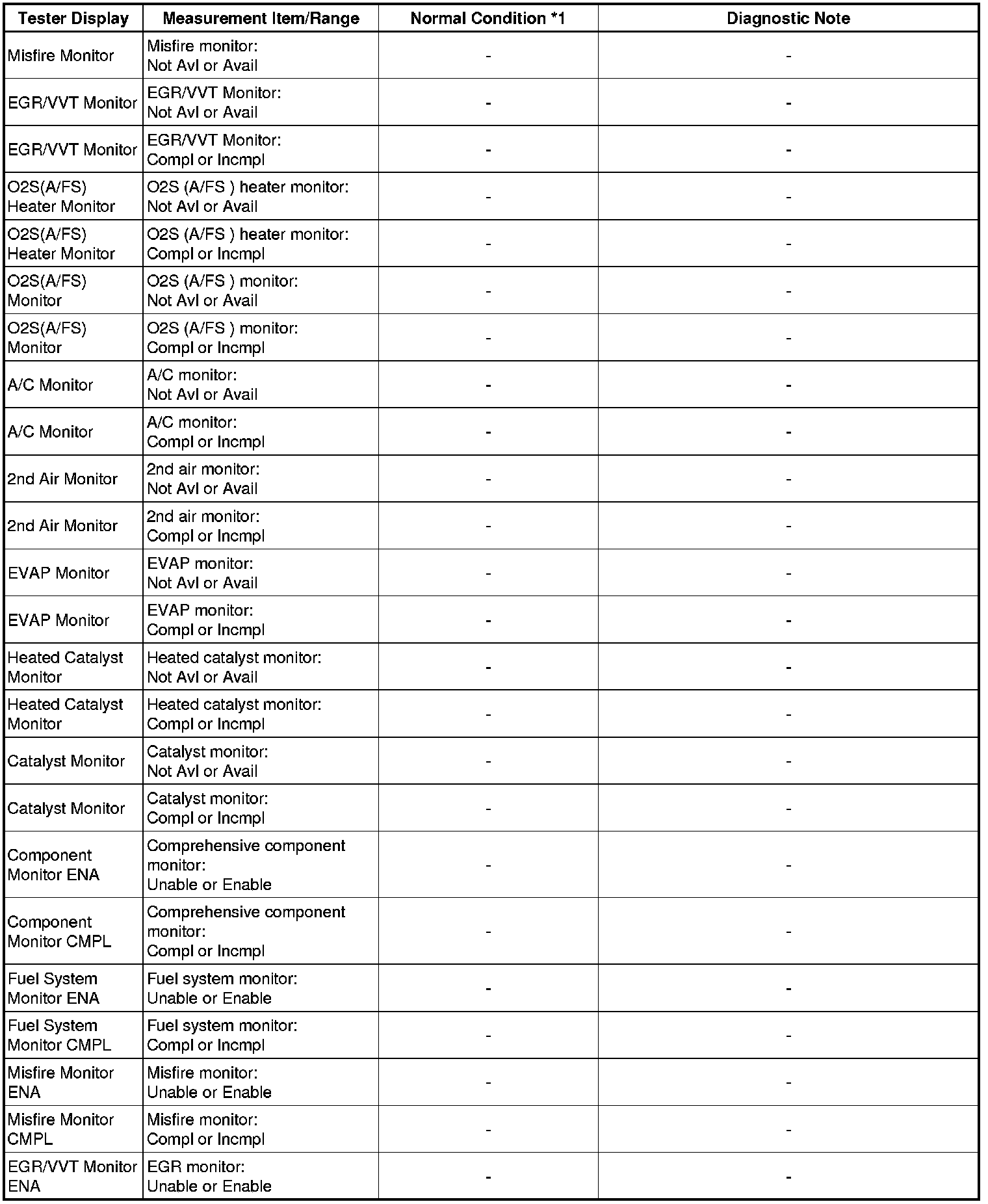 * *1: If no idling conditions are specified, the transmission gear selector lever should be in the N or P position (neutral), and the A/C switch and all accessory switches should be OFF.
