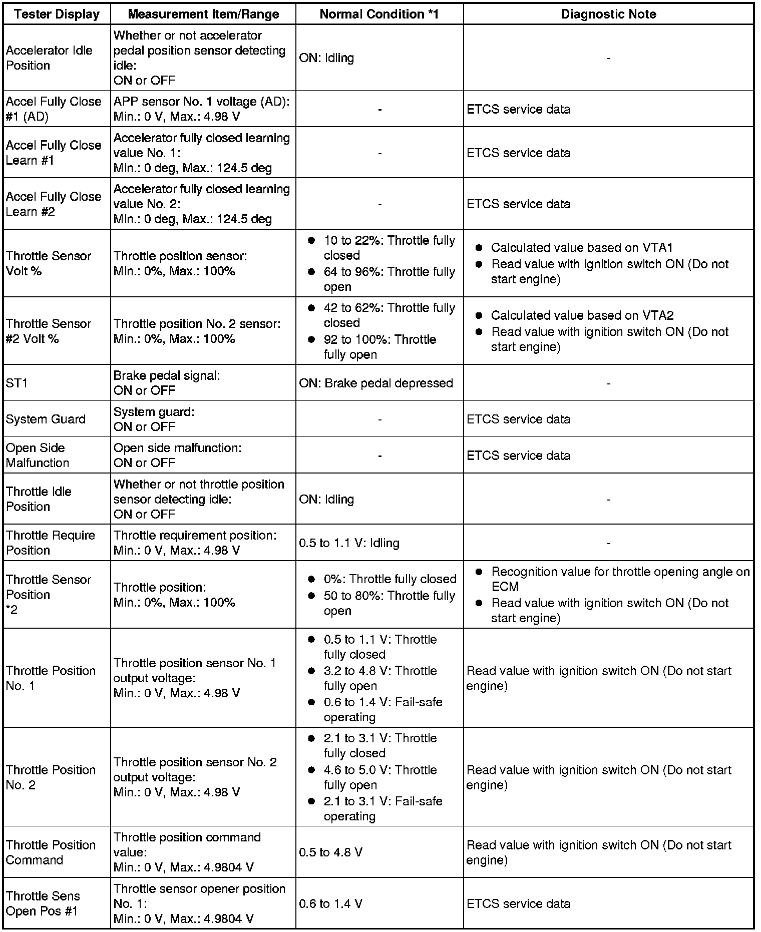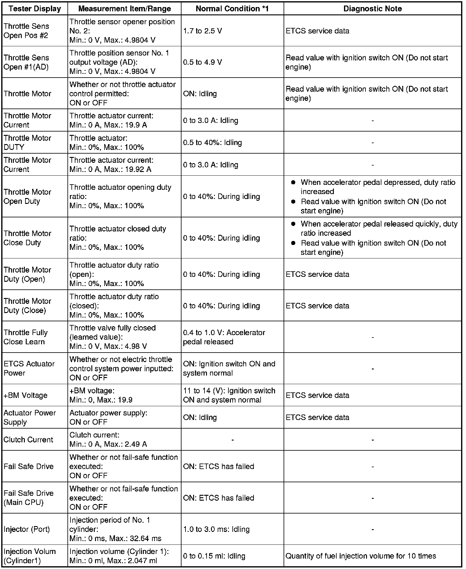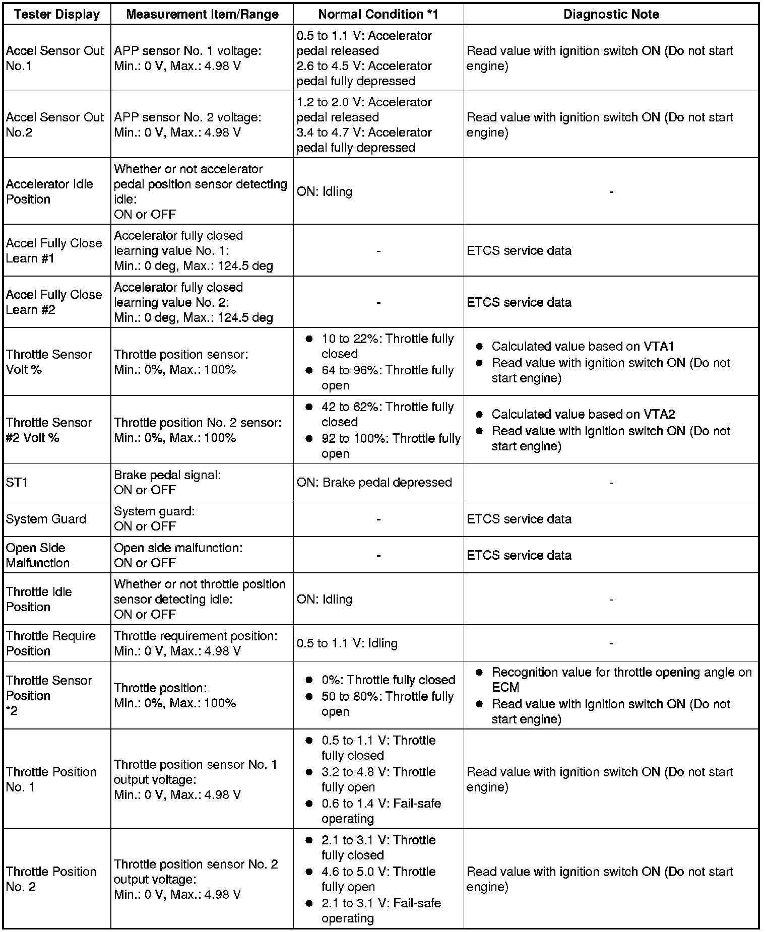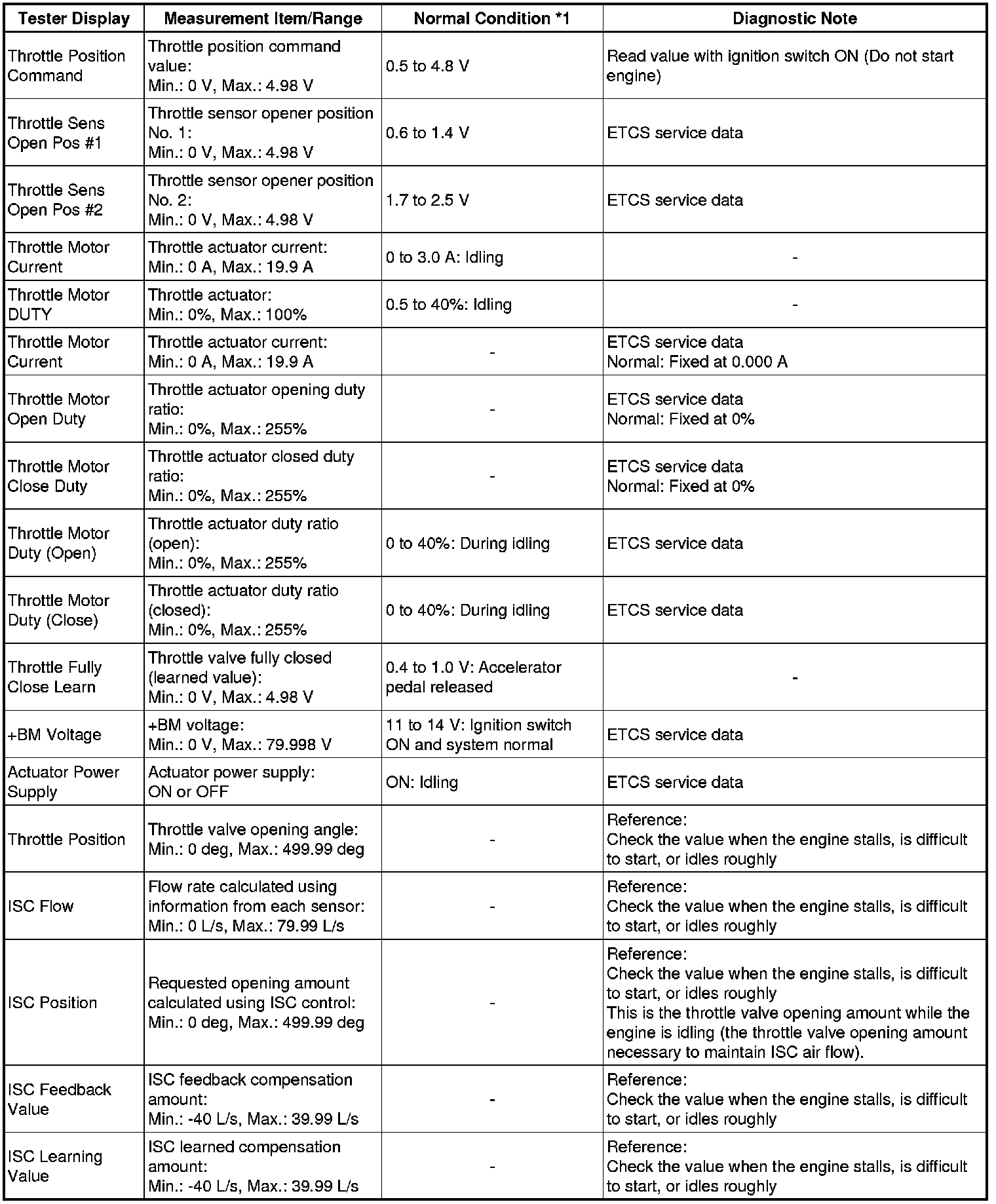 * *2: Excluding throttle valve opening percentage due to Idle Speed Control (ISC).