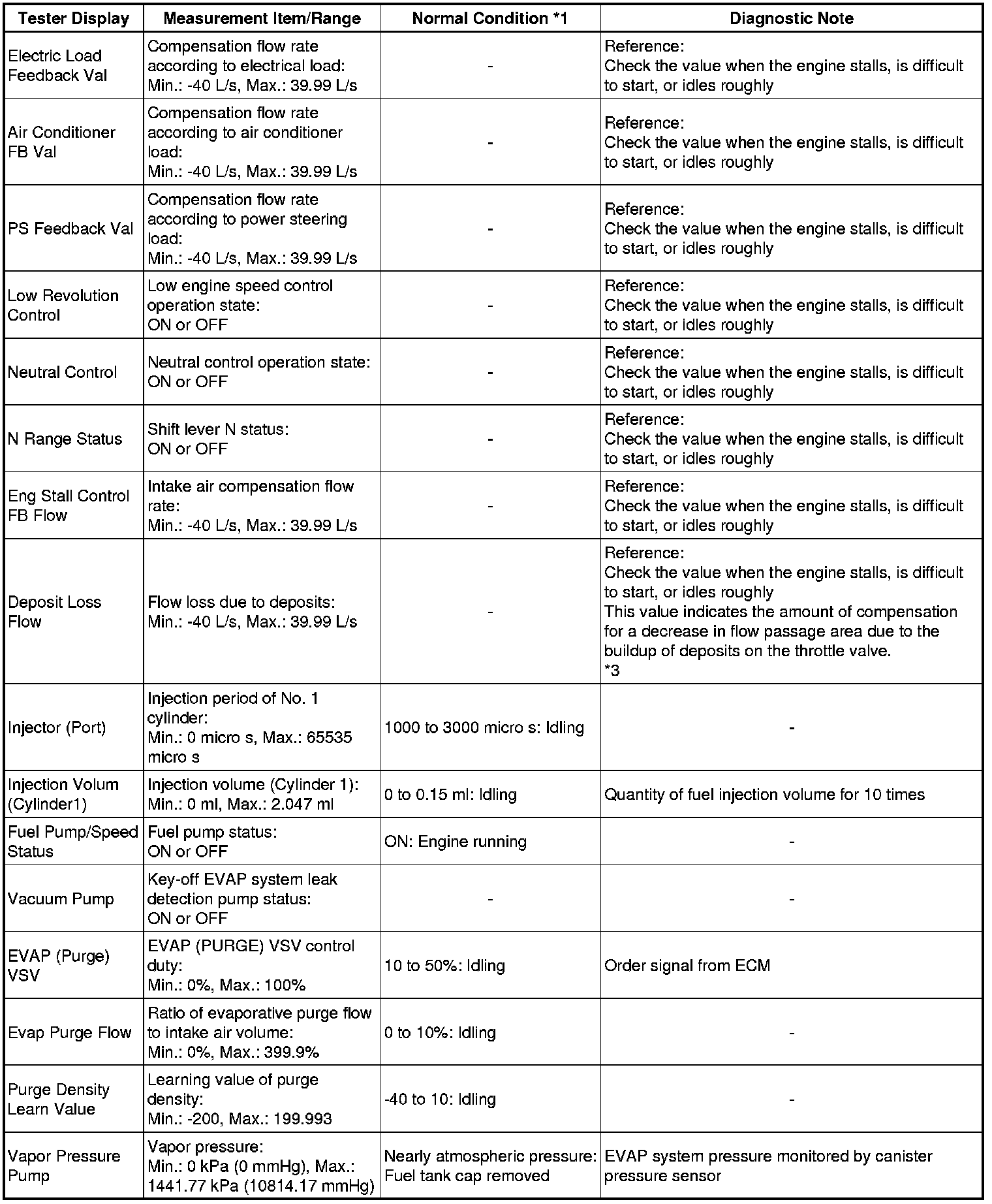 * *3: When the ISC learned value is initialized by disconnecting the battery negative terminal or removing the fuses (EFI and ETCS fuses), perform the following procedures in order to quickly relearn the Deposit Loss Flow value. After the Deposit Loss Flow has been relearned, gradual fine adjustments will continue automatically.