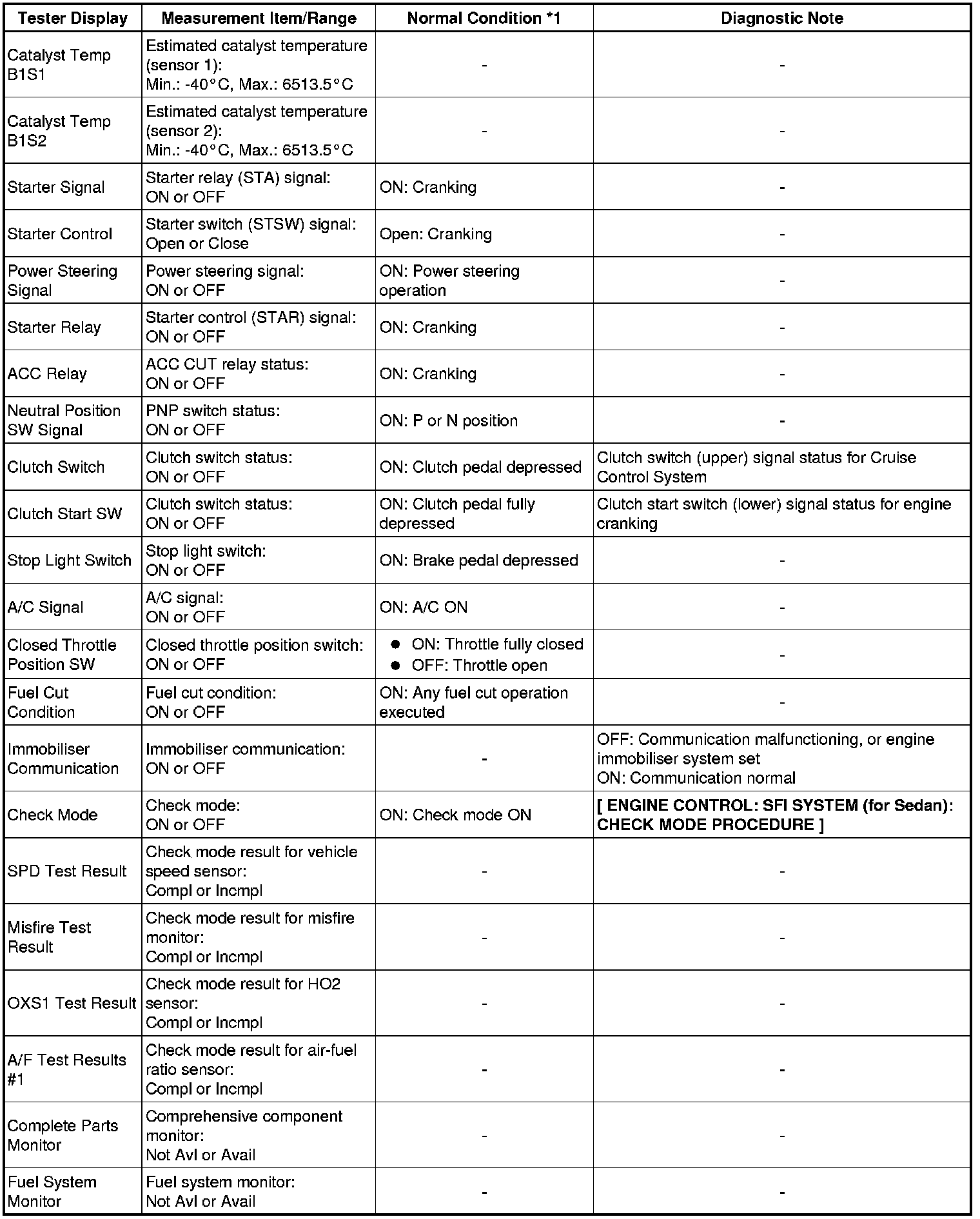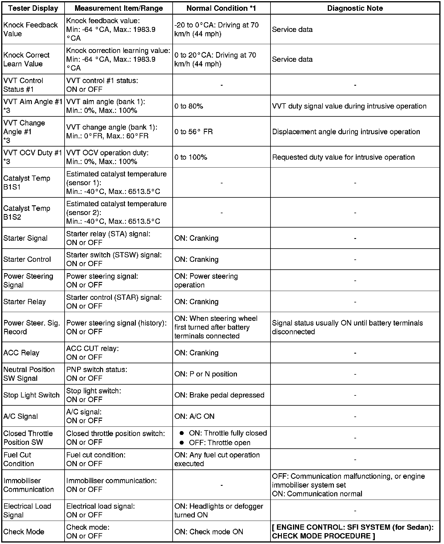 1NZ-FE ENGINE CONTROL: SFI SYSTEM (for Sedan): DATA LIST / ACTIVE TEST