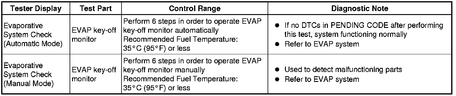 (e) Perform the System Check by referring to the table below.