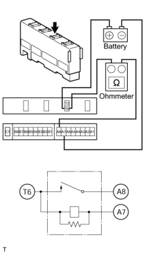 (2) Using an ohmmeter, measure the resistance between the terminals.