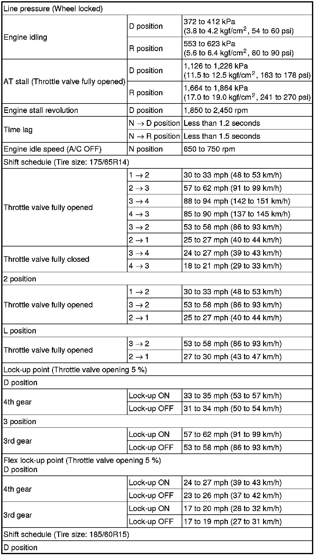 SPECIFICATIONS: U340E AUTOMATIC TRANSMISSION / TRANSAXLE (for Sedan): SERVICE DATA
