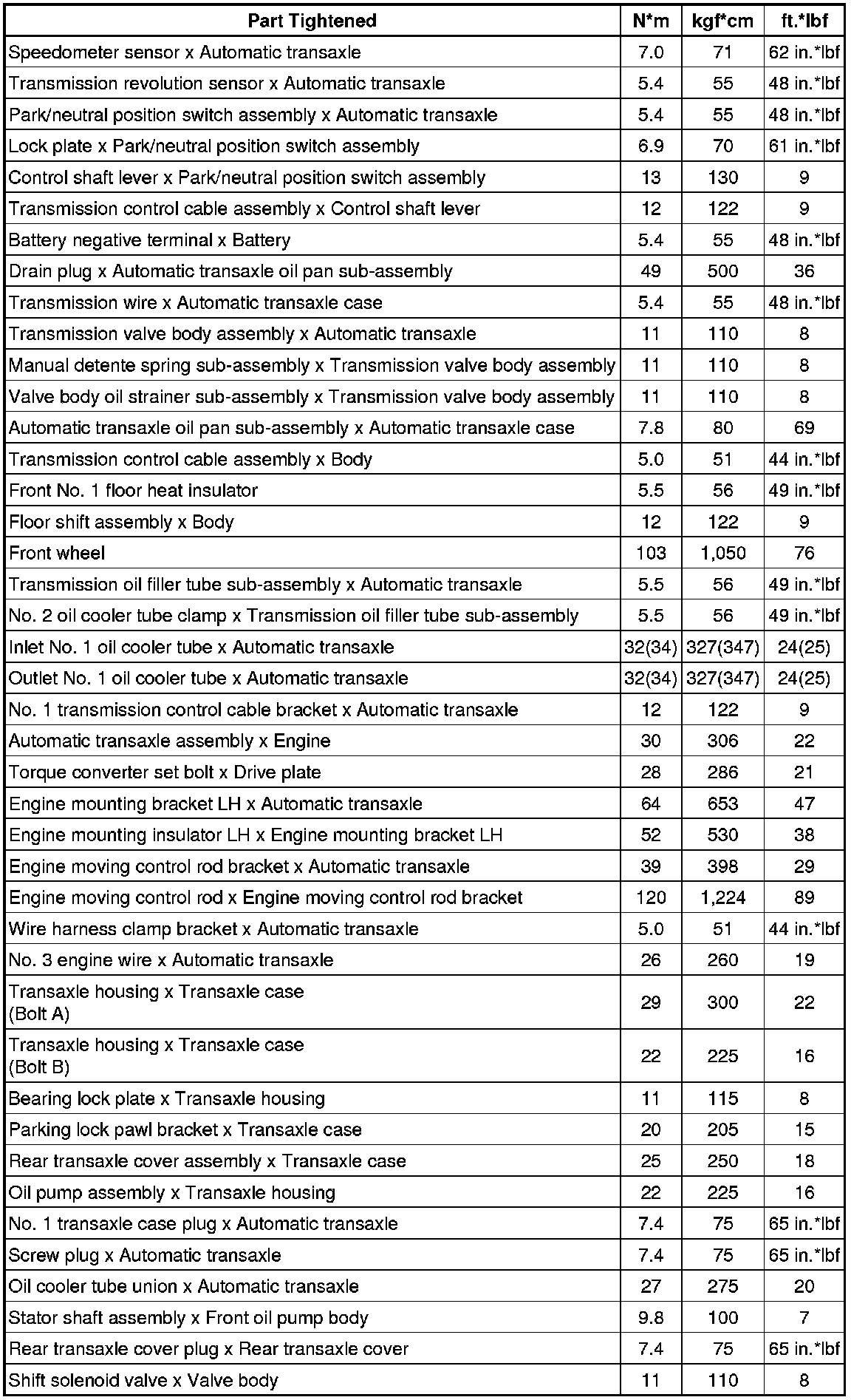 SPECIFICATIONS: U340E AUTOMATIC TRANSMISSION / TRANSAXLE (for Sedan): TORQUE SPECIFICATIONS