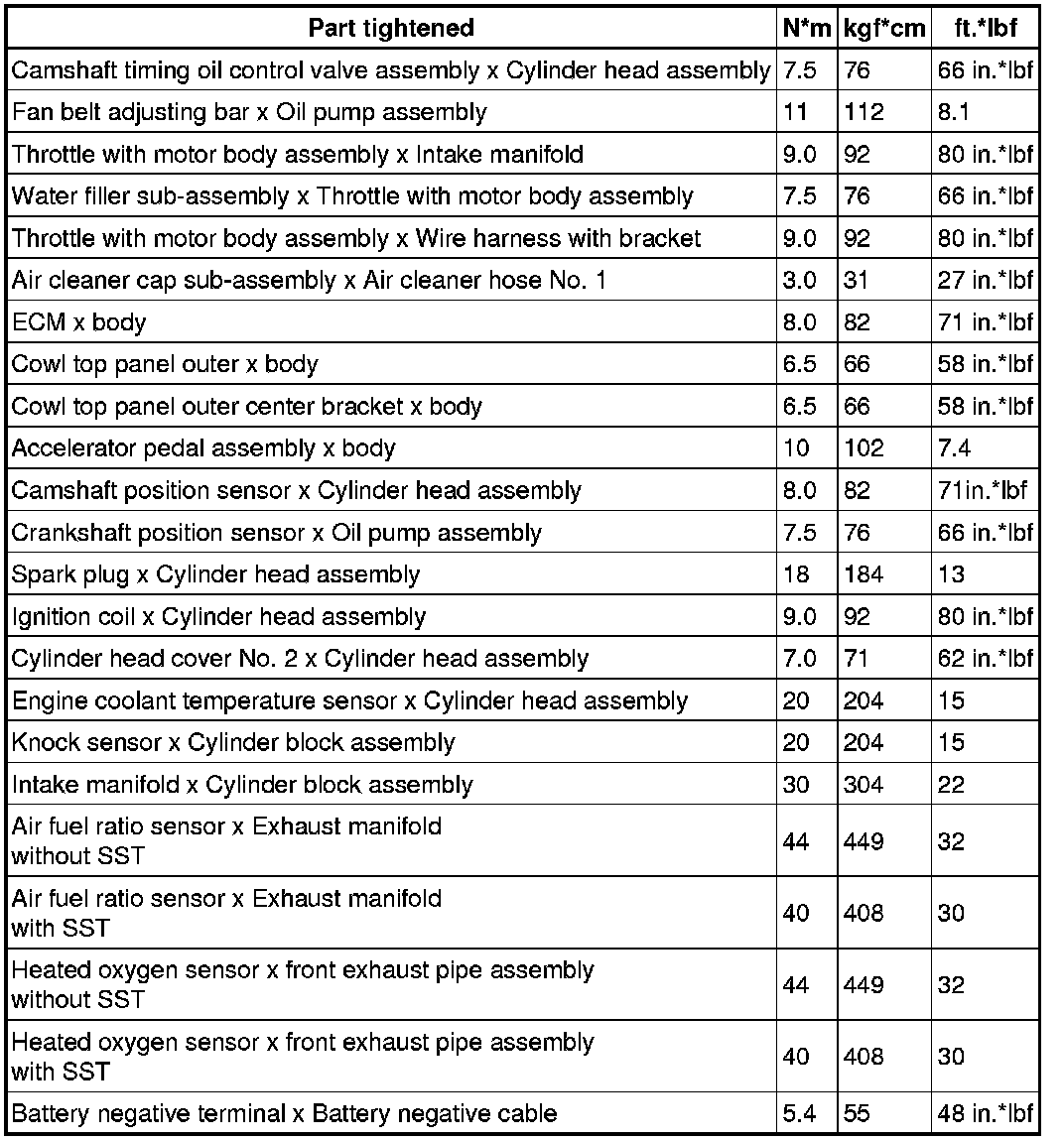 SPECIFICATIONS: 1NZ-FE ENGINE CONTROL (for Sedan): TORQUE SPECIFICATIONS