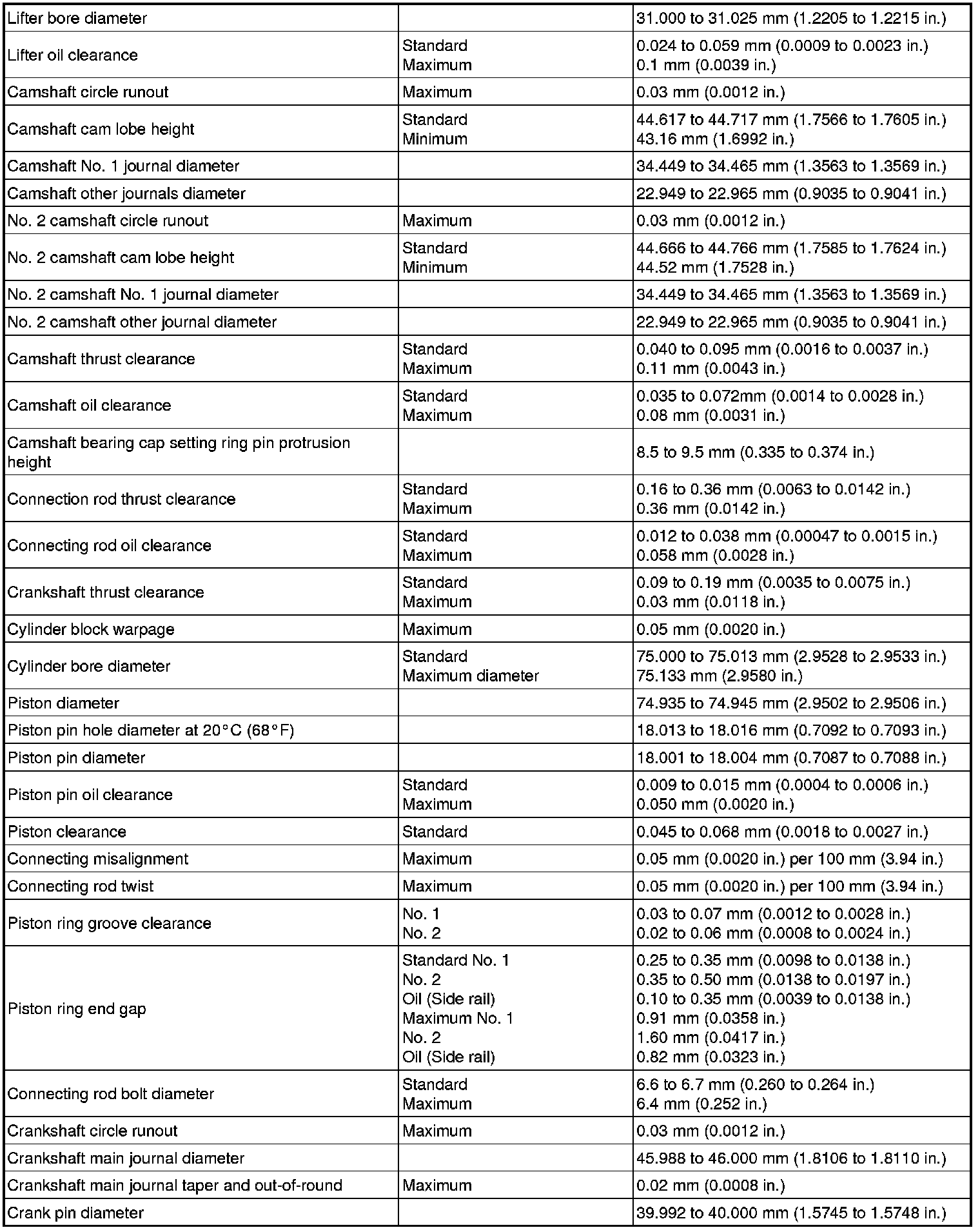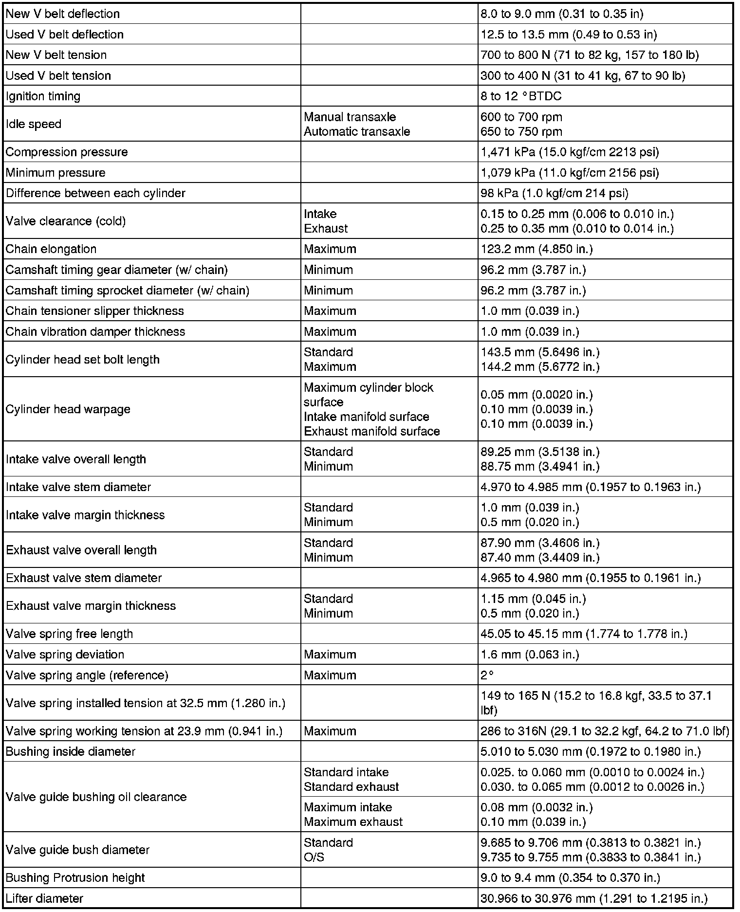 SPECIFICATIONS: 1NZ-FE ENGINE MECHANICAL (for Sedan): SERVICE DATA