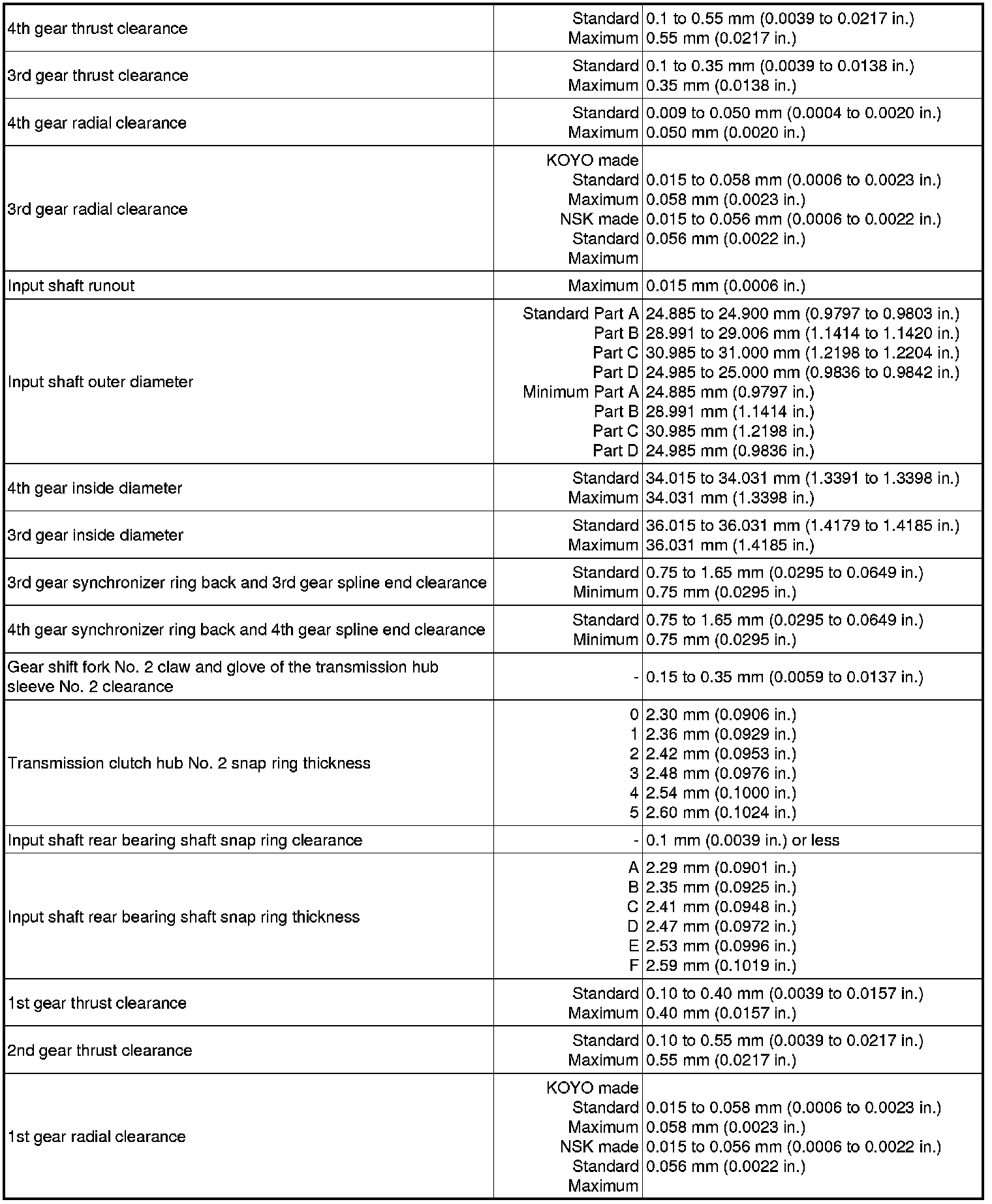 SPECIFICATIONS: C50 MANUAL TRANSMISSION / TRANSAXLE (for Sedan): SERVICE DATA