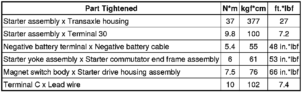 SPECIFICATIONS: 1NZ-FE STARTING (for Sedan): TORQUE SPECIFICATIONS