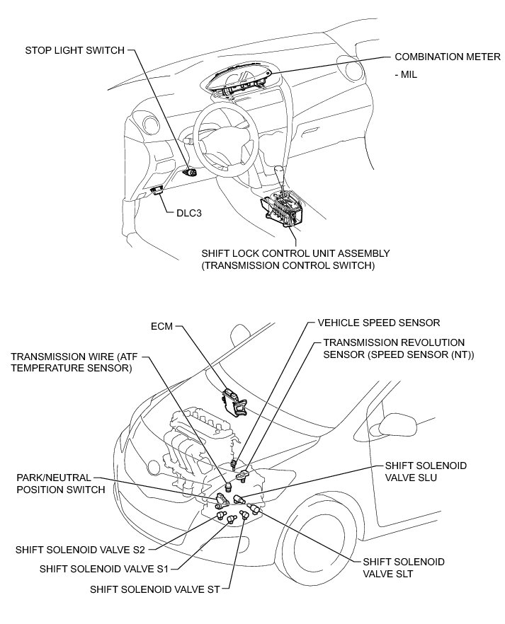 U340E AUTOMATIC TRANSMISSION / TRANSAXLE: AUTOMATIC TRANSAXLE SYSTEM (for Sedan): PARTS LOCATION