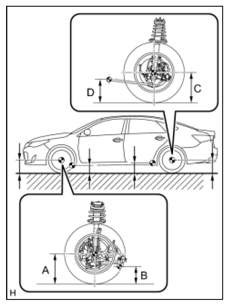 - Before inspecting the wheel alignment, adjust the vehicle height to the specified value.