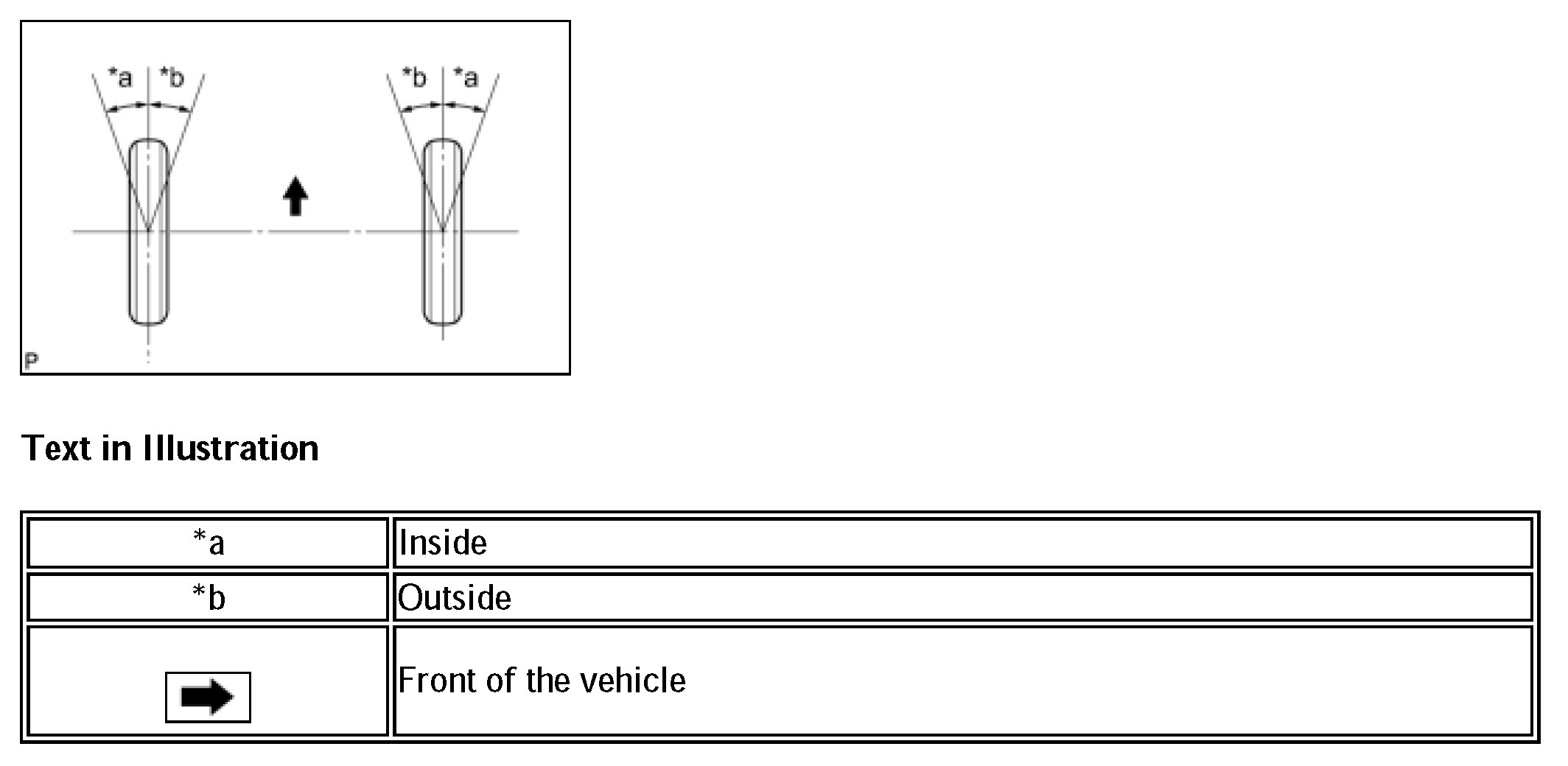 HINT: Camber is not adjustable. If the measurement is not within the specified range, inspect the suspension parts for damage and/or wear, and replace them if necessary.