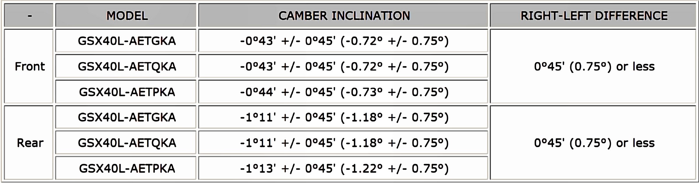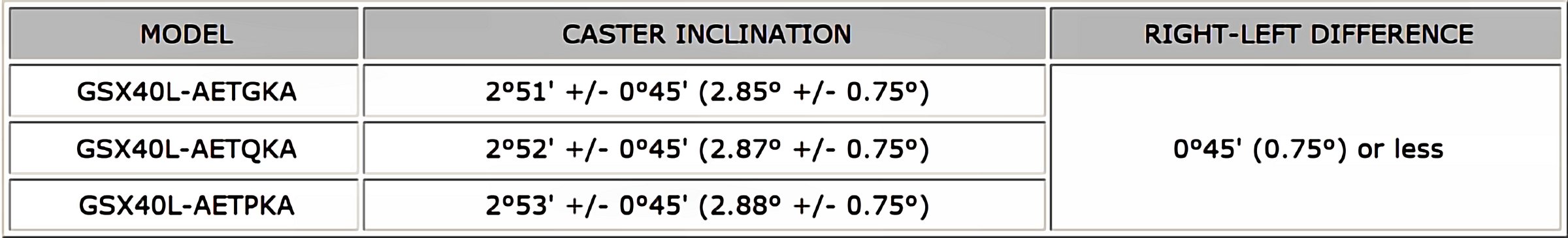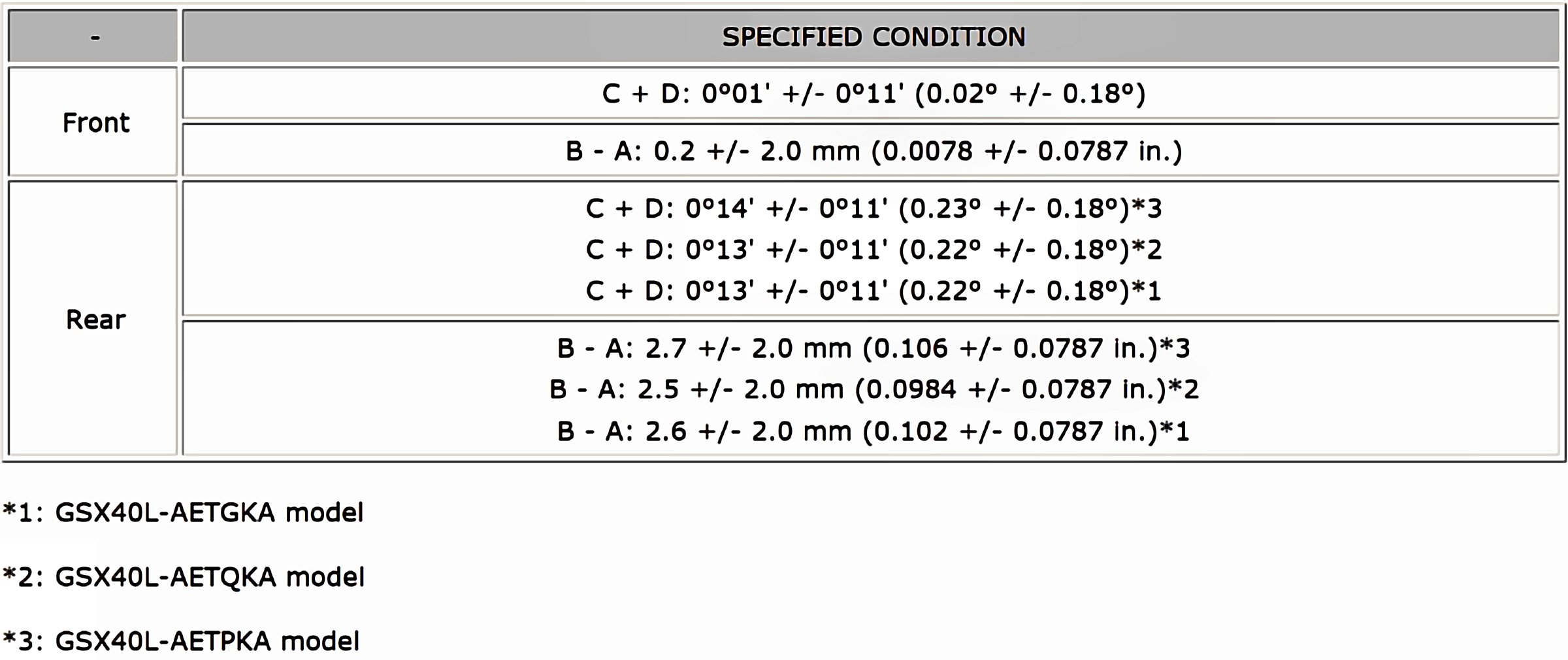 Wheel Alignment Specifications (Unloaded Vehicle)