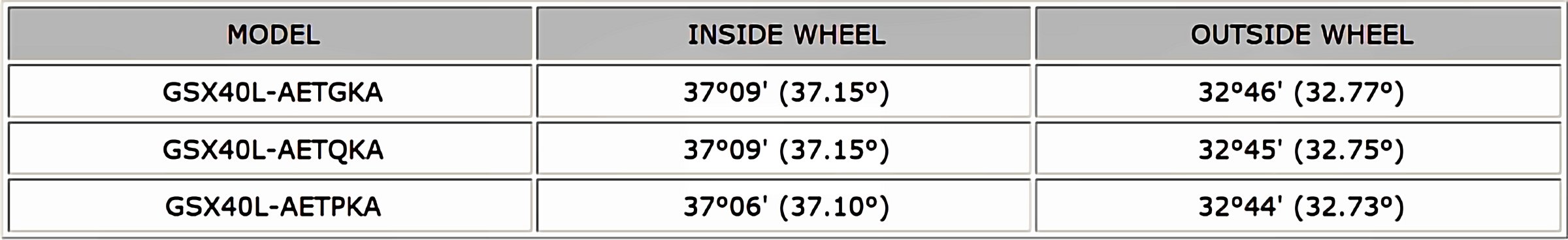 Wheel Turning Angle: