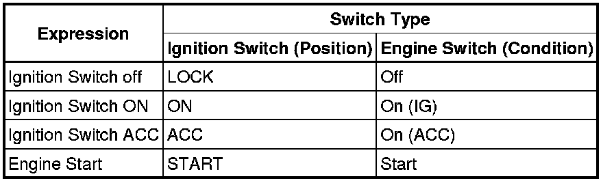 1. EXPRESSIONS OF IGNITION SWITCH