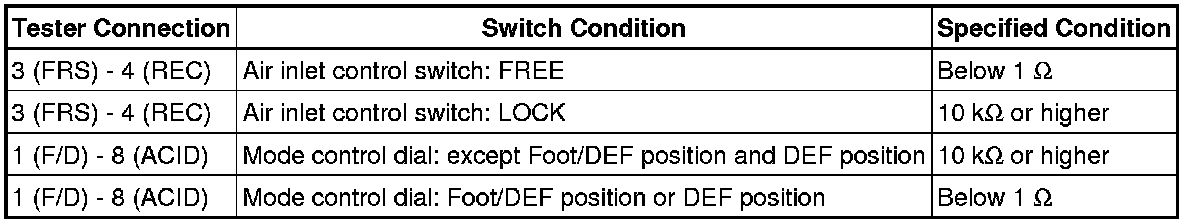 If the result is not as specified, replace the No. 1 heater control (air inlet control switch).