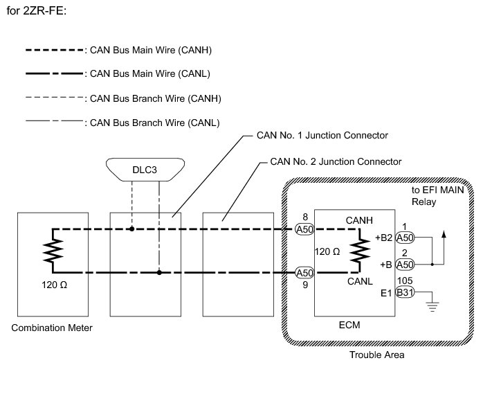 1. CHECK FOR OPEN IN CAN NO. 1 BUS MAIN WIRE (ECM MAIN WIRE)