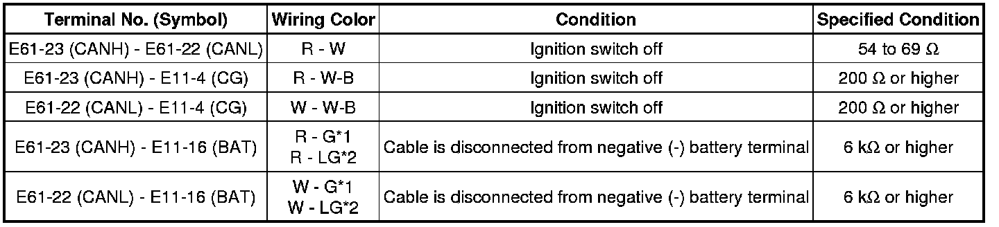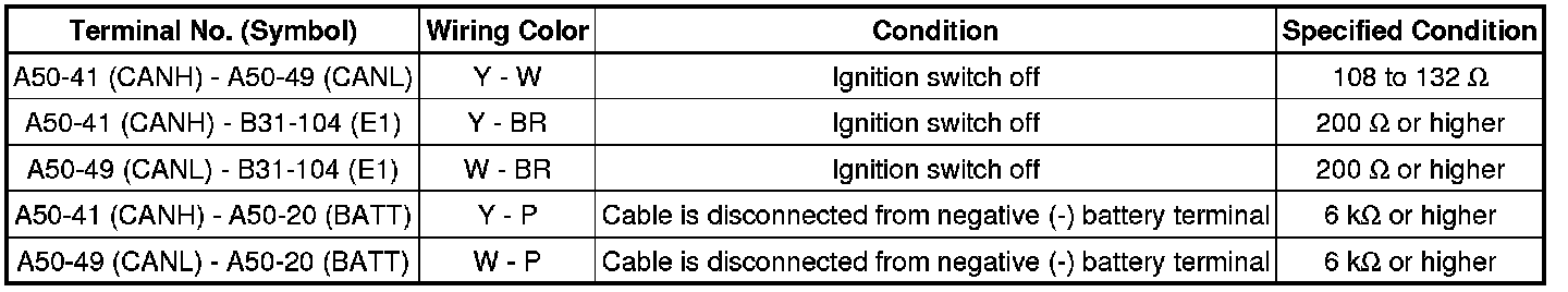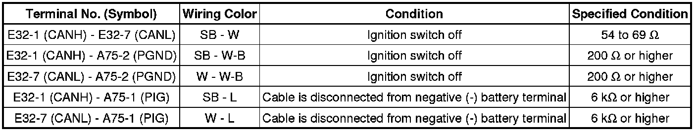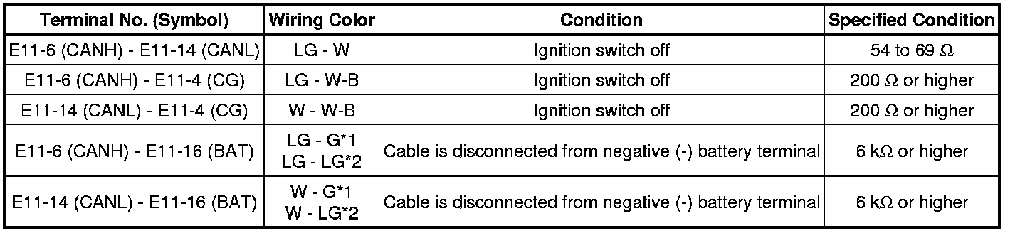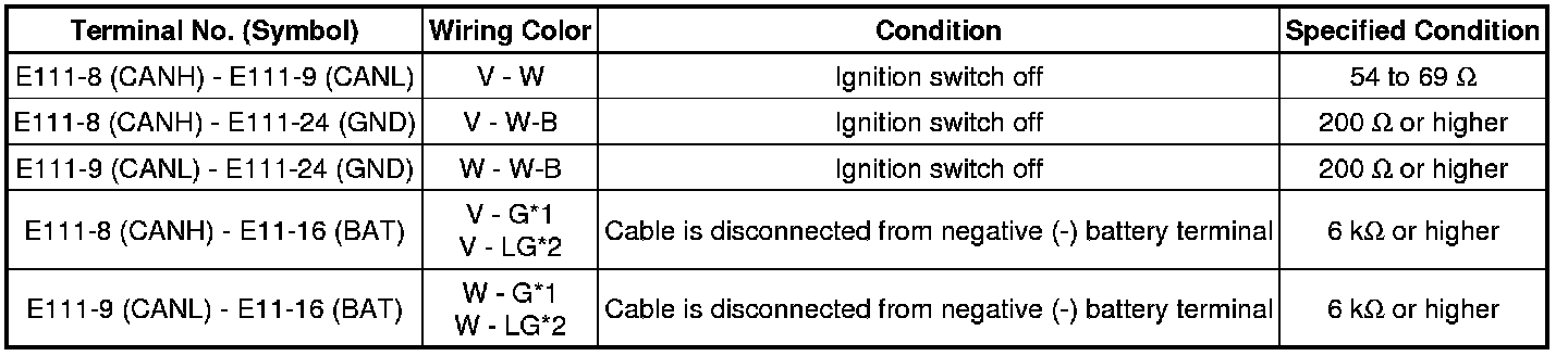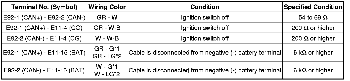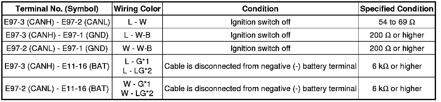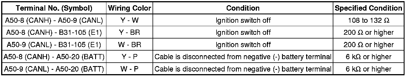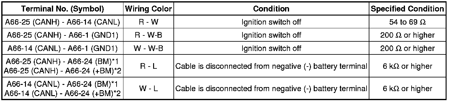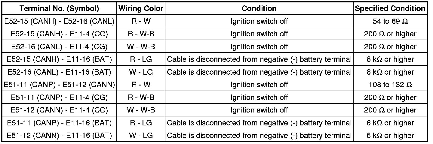 * Turn the ignition switch off before measuring the resistance of the CAN bus main wires and CAN bus branch wires.