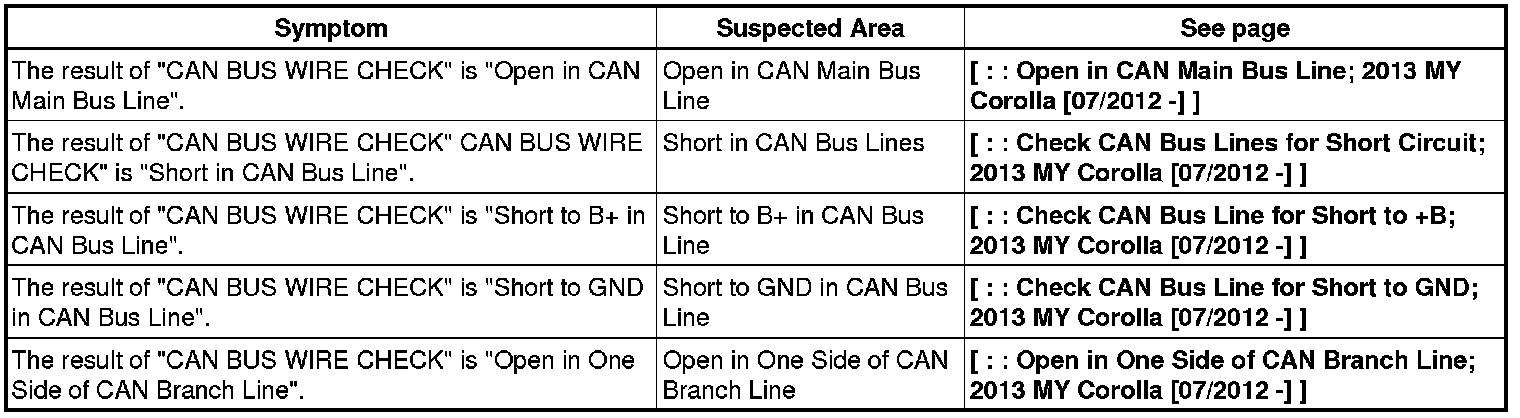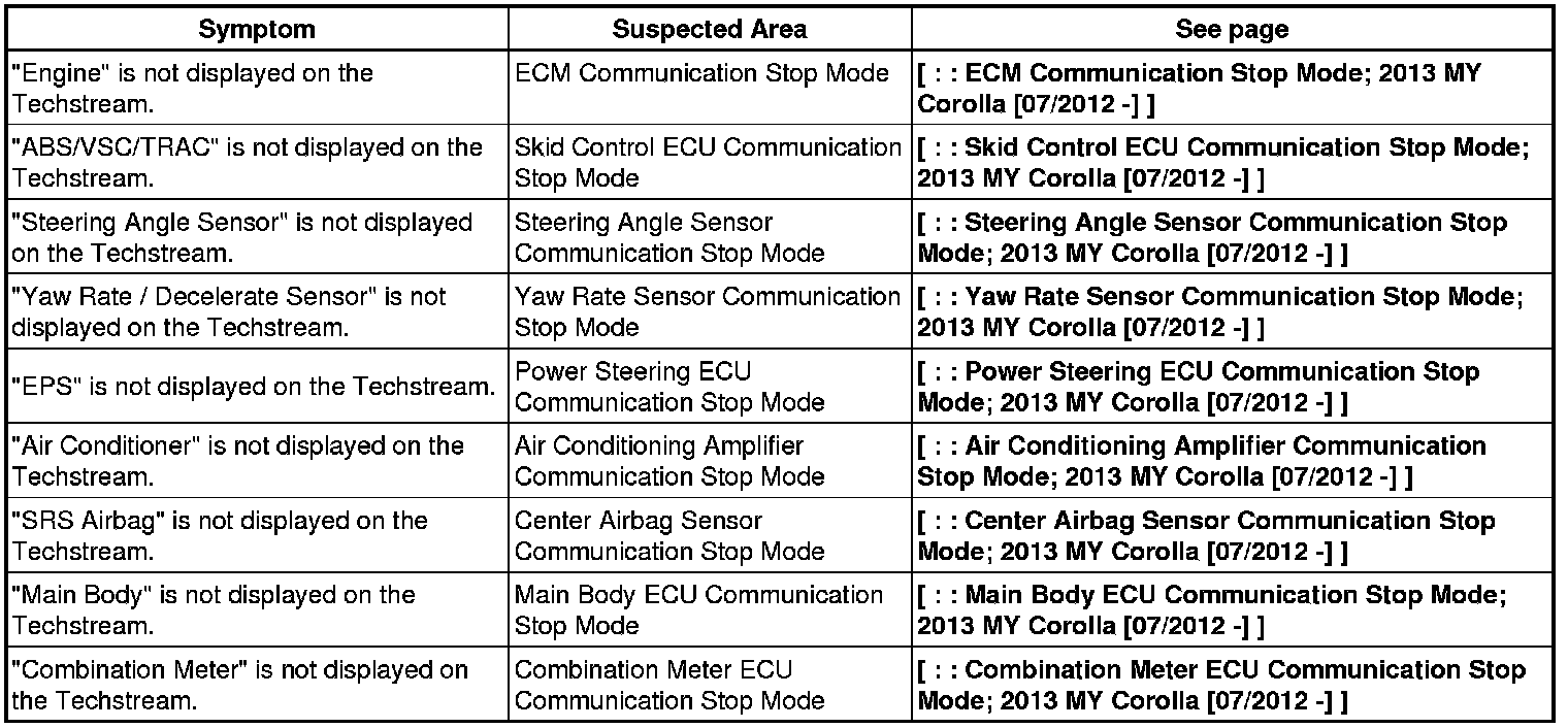 NETWORKING: CAN COMMUNICATION SYSTEM: PROBLEM SYMPTOMS TABLE; 2013 MY Corolla [07/2012 -]