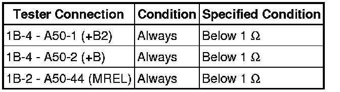 When the ignition switch is turned to the ON, battery voltage is applied to IGSW of the ECM. The output signal from the MREL terminal of the ECM causes a current to flow to the coil, closing the contacts of the integration relay (EFI MAIN relay) and supplying power to either terminals +B and +B2 of the ECM.