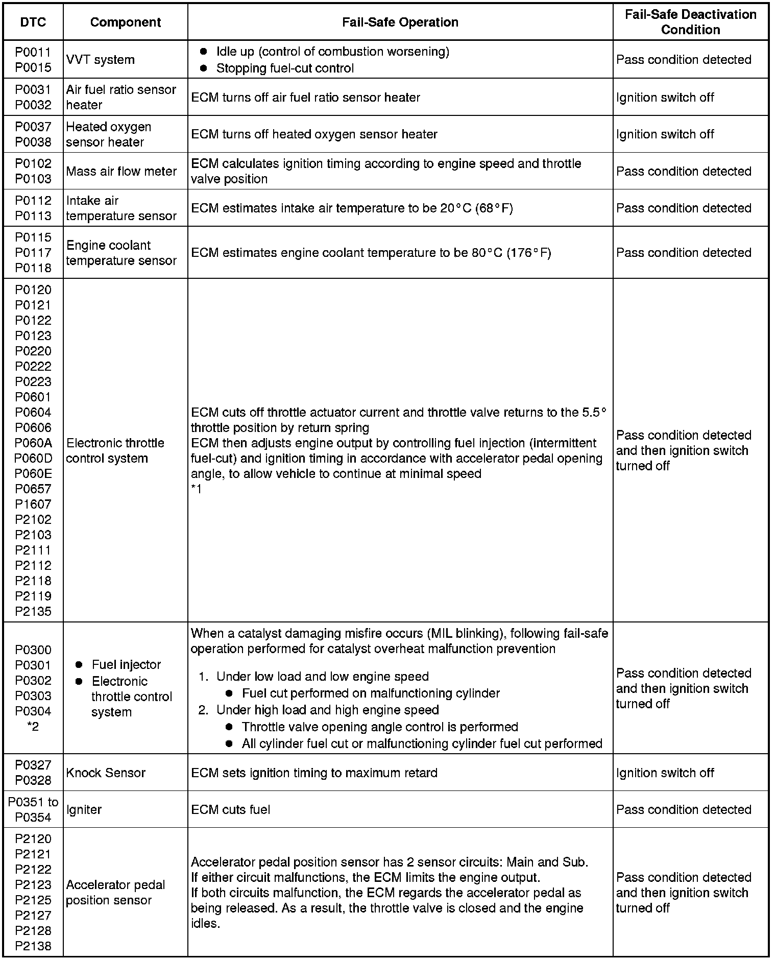 * *2: Misfire related fail-safe operations occur when catalyst overheat malfunctions occur.