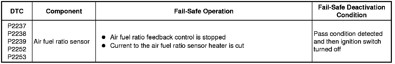 If any of the following DTCs are set, the ECM enters fail-safe mode to allow the vehicle to be driven temporarily or stops fuel injection.