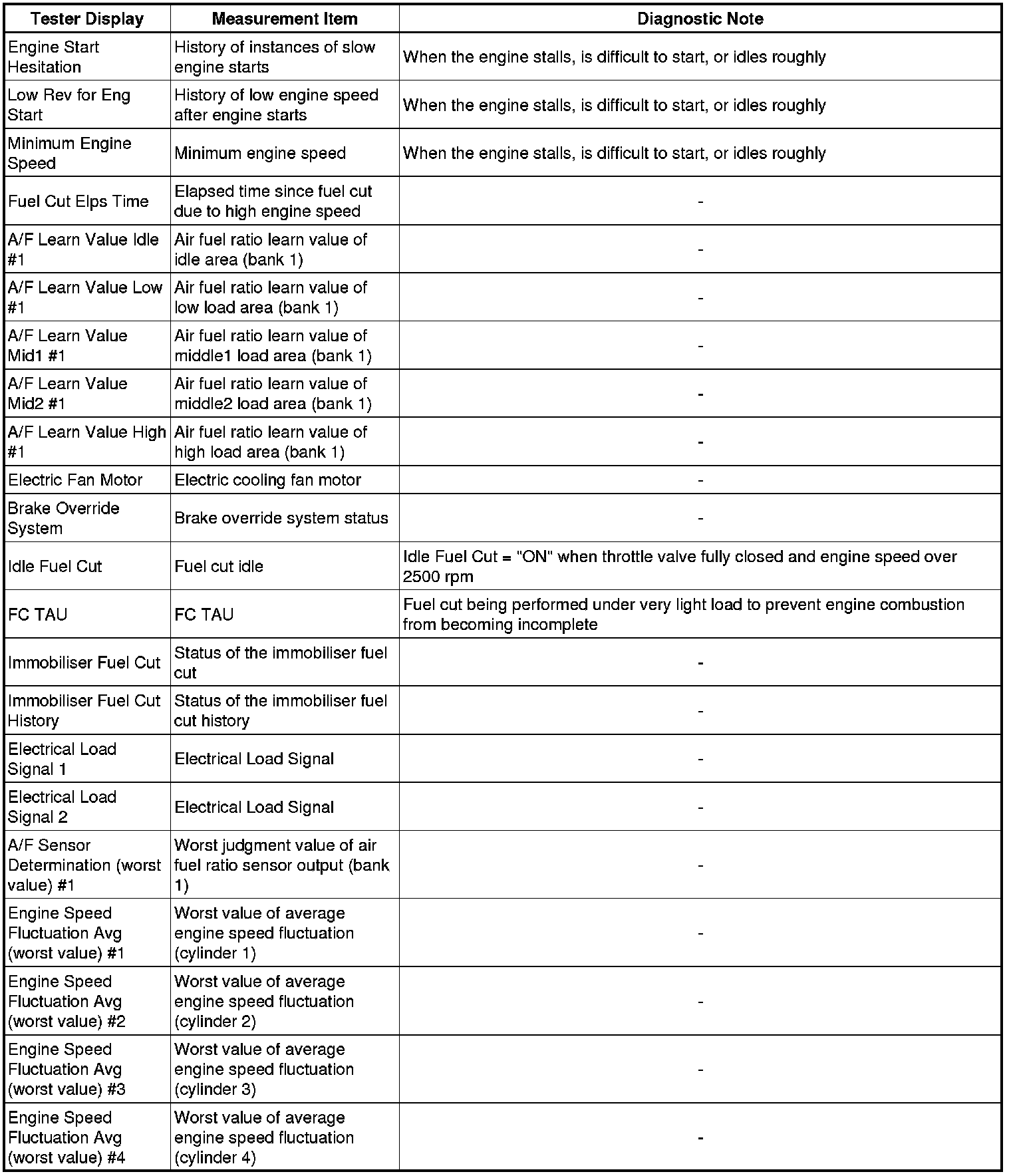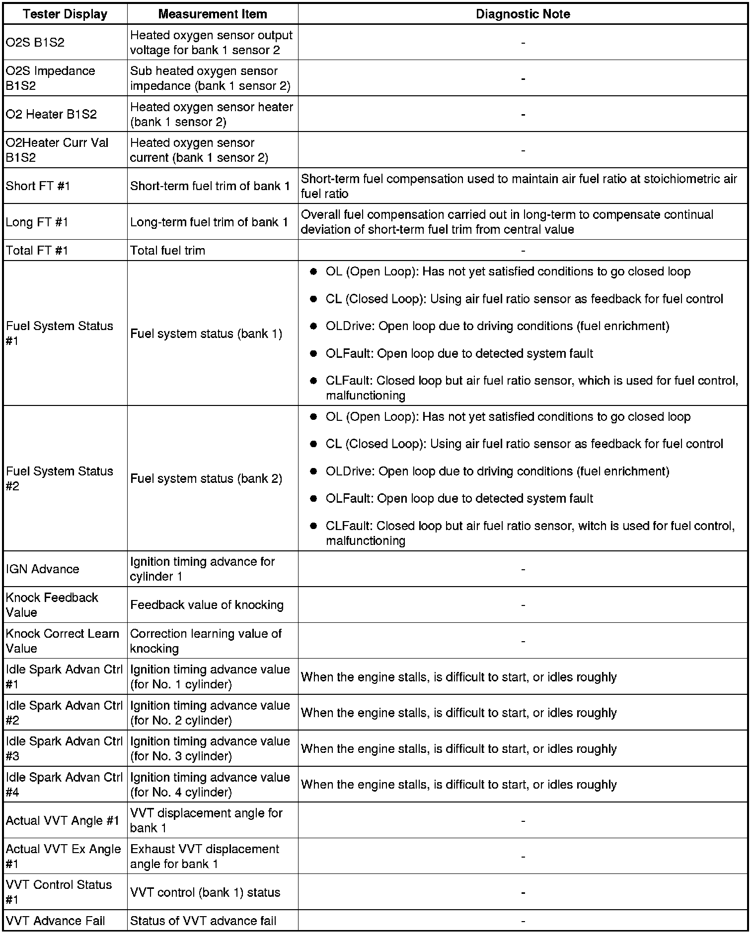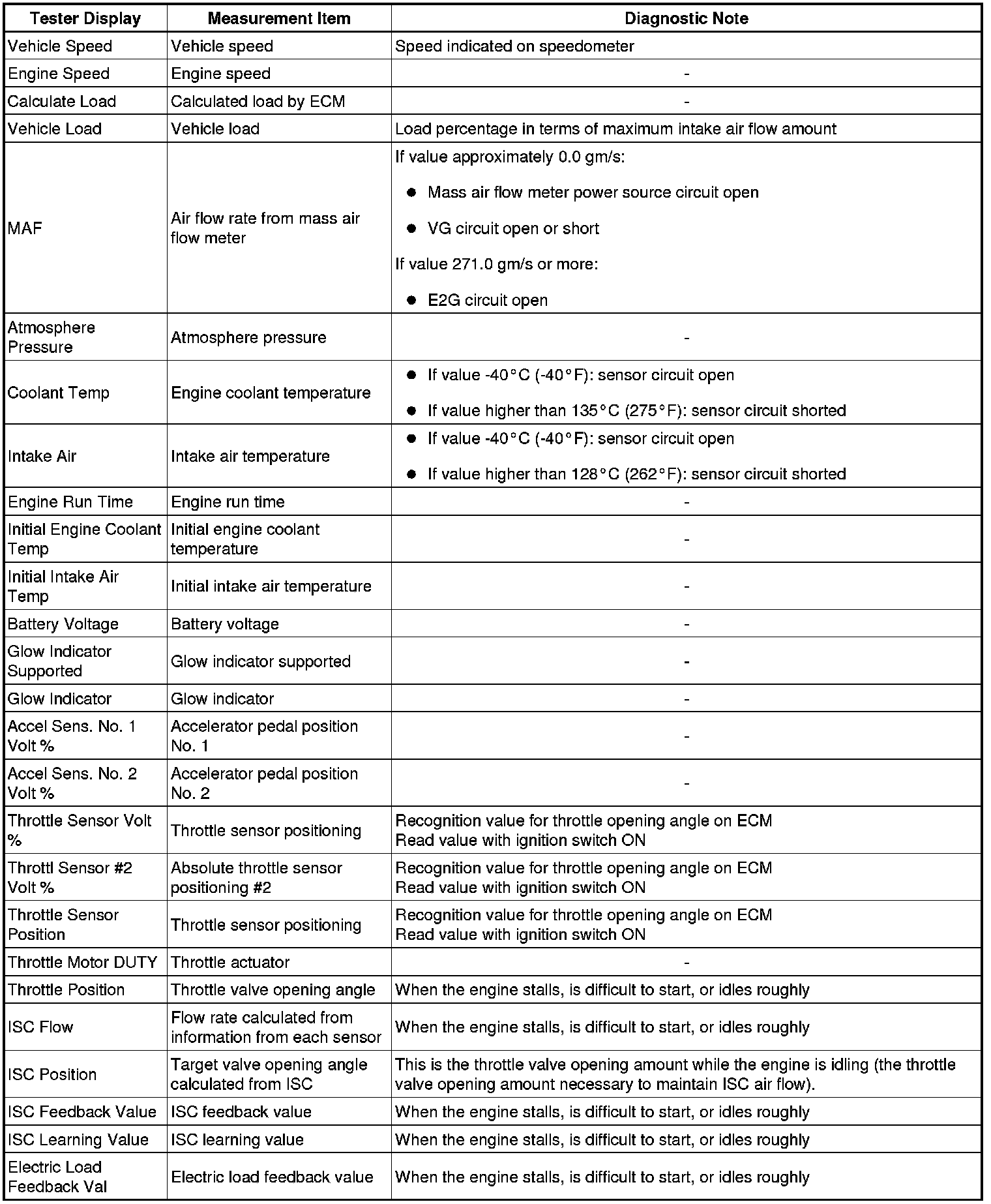 * The ECM records vehicle and driving condition information as freeze frame data the moment a DTC is stored. When troubleshooting, freeze frame data can be helpful in determining whether the vehicle was moving or stationary, whether the engine was warmed up or not, whether the air fuel ratio was lean or rich, as well as other data recorded at the time of a malfunction.