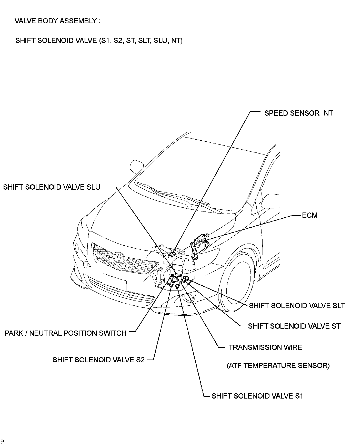 U341E AUTOMATIC TRANSMISSION / TRANSAXLE: AUTOMATIC TRANSAXLE SYSTEM: PARTS LOCATION; 2013 MY Corolla [07/2012 -]