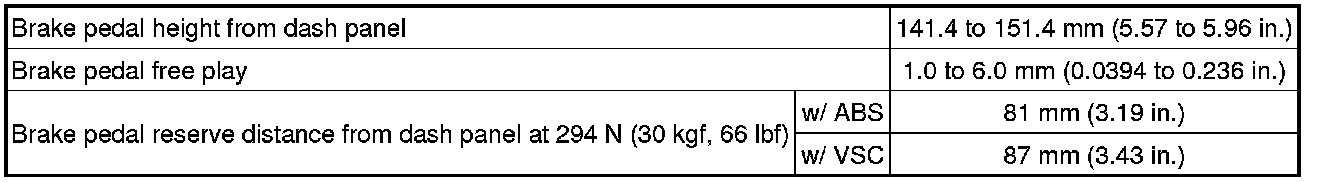 SPECIFICATIONS: BRAKE SYSTEM (OTHER): SERVICE DATA; 2013 MY Corolla [07/2012 -]