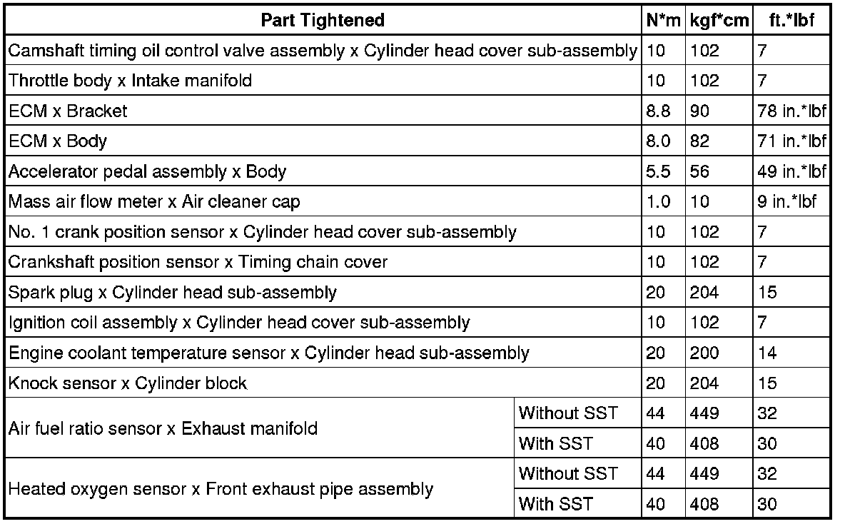 SPECIFICATIONS: 2ZR-FE ENGINE CONTROL: TORQUE SPECIFICATIONS; 2013 MY Corolla [07/2012 -]