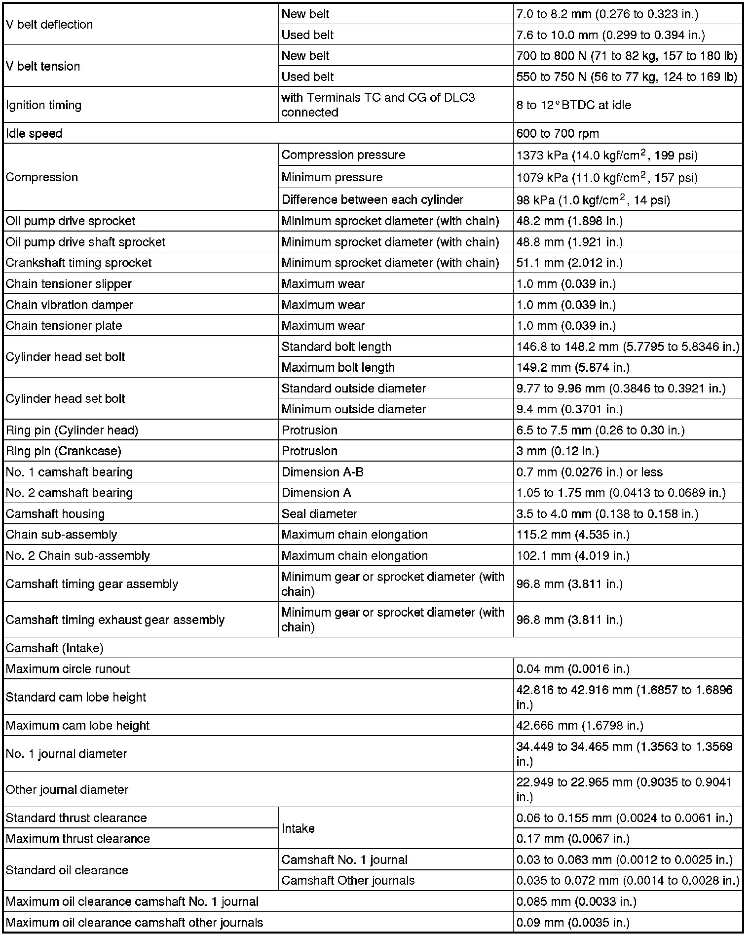 SPECIFICATIONS: 2ZR-FE ENGINE MECHANICAL: SERVICE DATA; 2013 MY Corolla [07/2012 -]