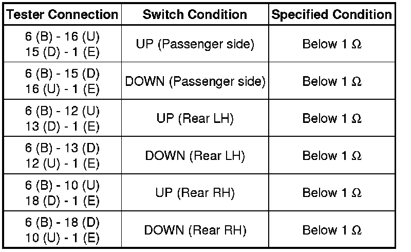 (a) Check that the passenger door power window and rear door power window manual UP and DOWN function operates normally.